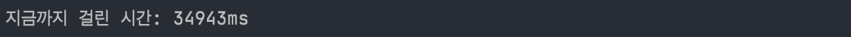 개선 후, 순수 테스트코드 시간은 15947ms(15.9초), 테스트 컨텍스트 로딩시간을 포함한 전체 테스트코드 수행시간은 34943ms(34.9초)가 소요된 것으로 측정되었다.