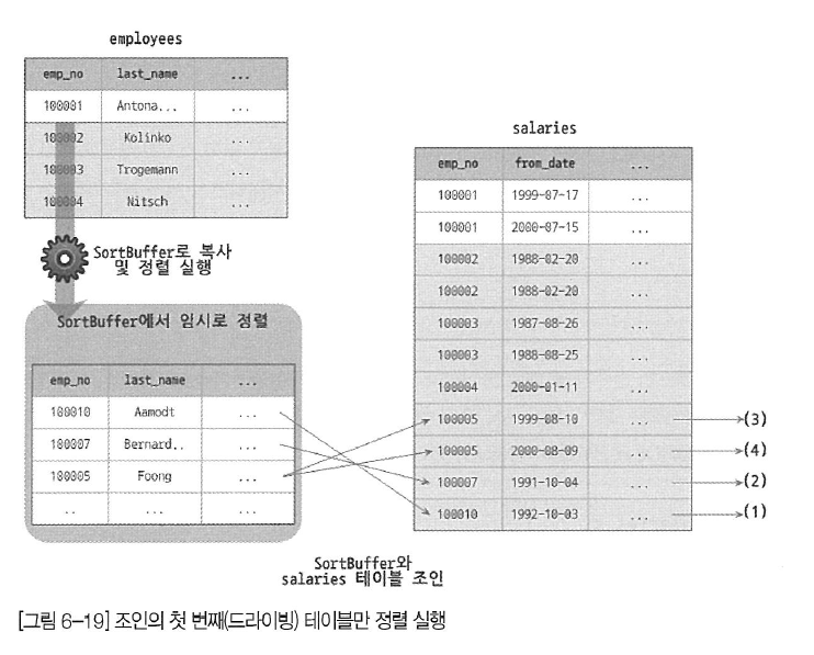 Using filesort는 쿼리에서 첫 번째로 조회하는 테이블(드라이빙 테이블이라고 한다)에 대해서만 정렬이 필요한 경우이다.
