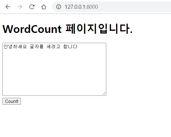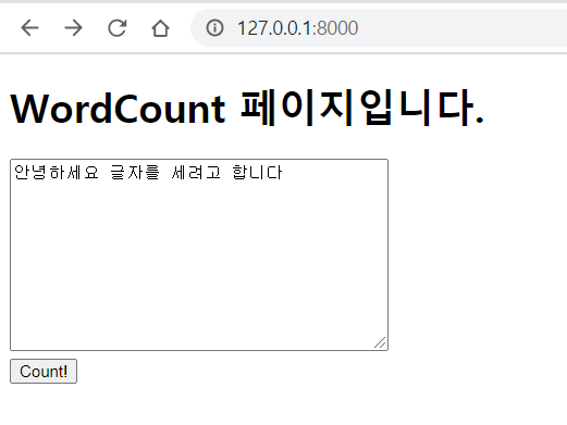 저장하고 다시 wordcount 페이지에서 값을 입력 후 제출버튼을 누르면