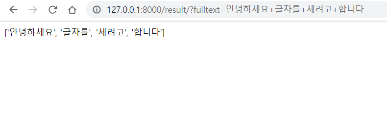 이번엔 입력받은 text를 split() 하여 반환된 값을 다시 text에 저장하고, 해당 데이터를 result.html에 가져가도록 하였다.