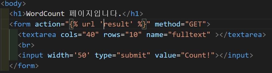 우선, myapp 폴더의 wordcount.html에 약간의 수정을 해준다.