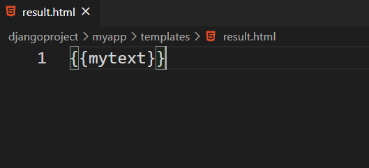 그리고, result.html에 {}를 두 개 묶어 변수임을 알려준 후, h1태그 내의 글들 사이에 넣어주자.